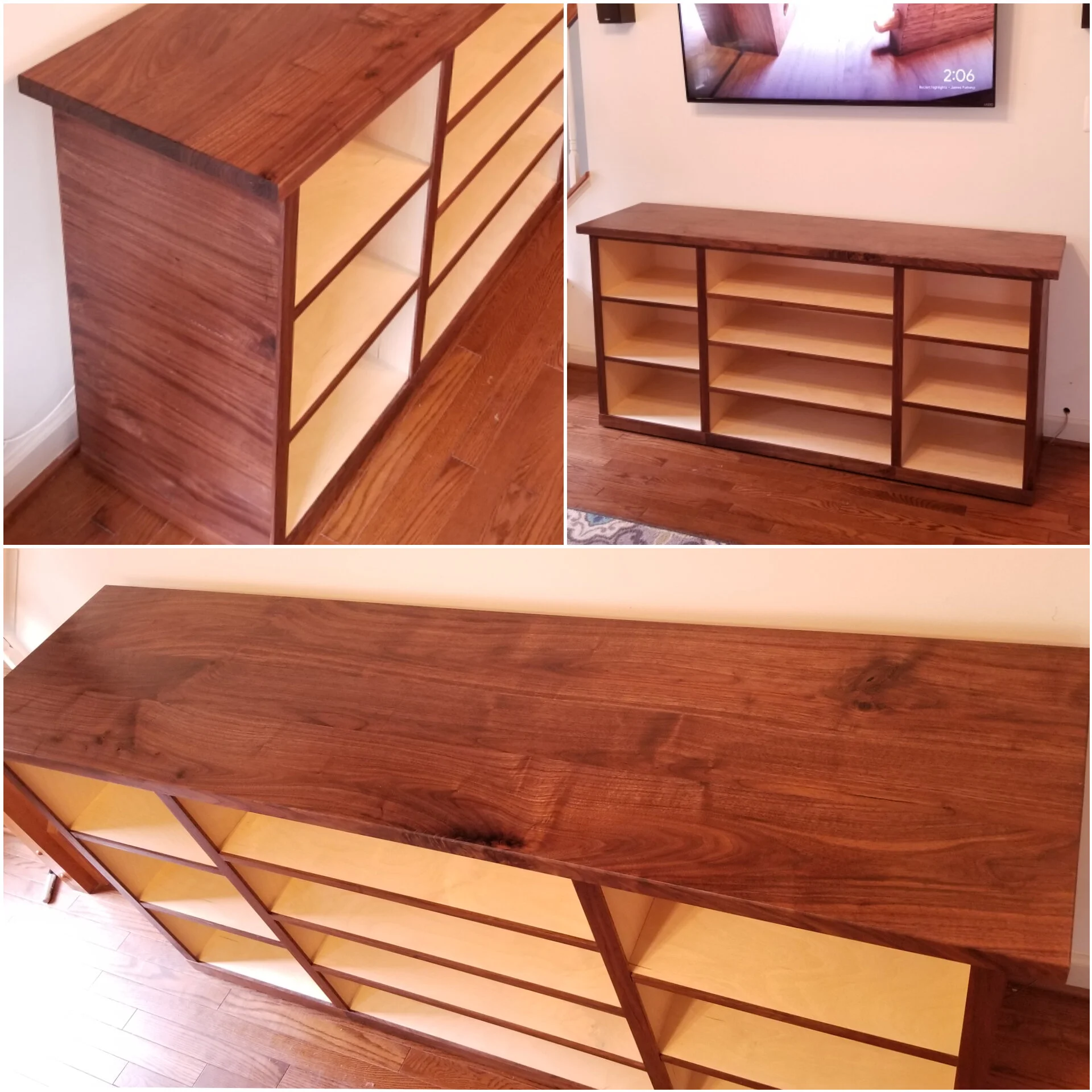 Solid Walnut top, with 3/4” Baltic Birch plywood frame and solid walnut edge banding.